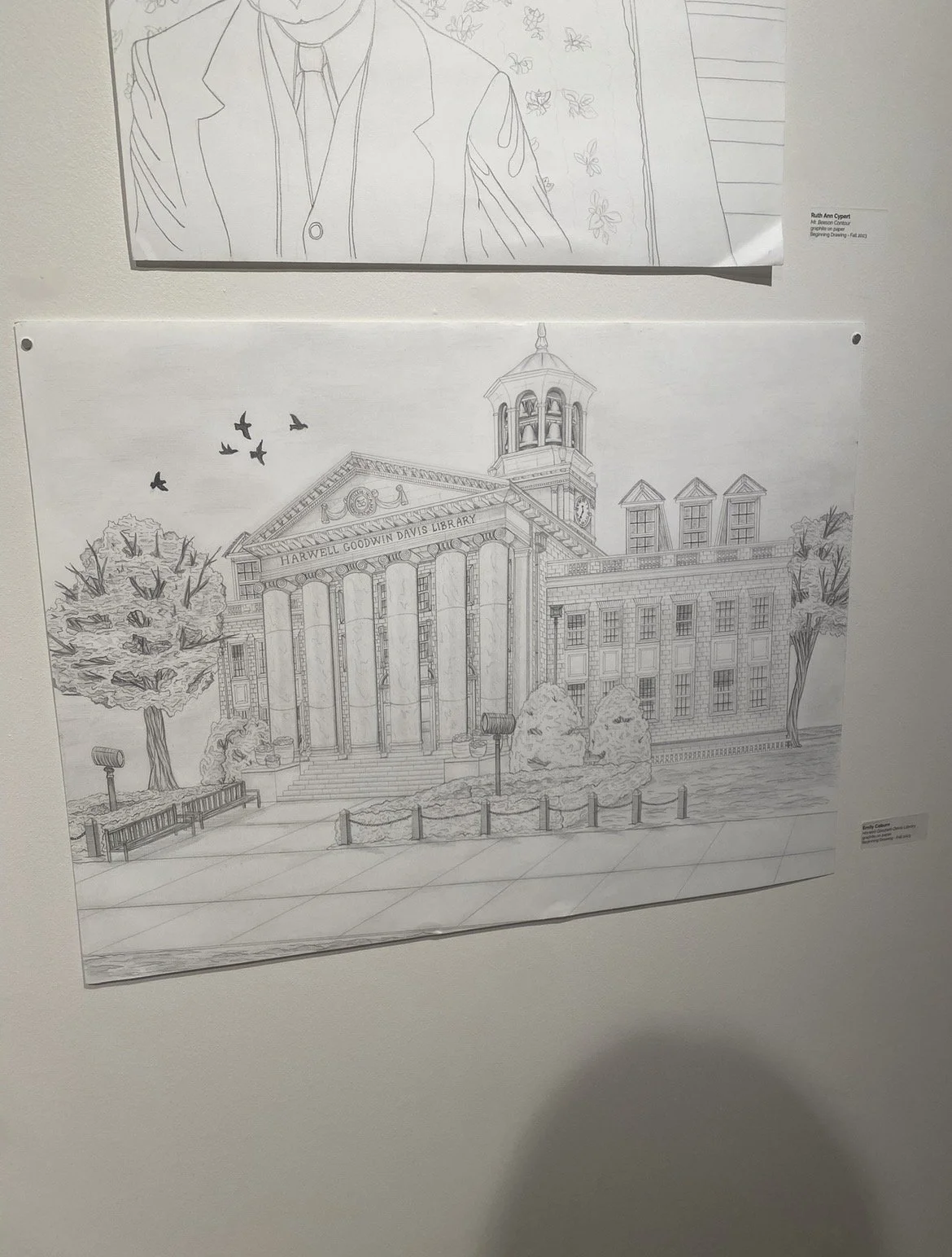 This is a drawing of the Harwell Goodwin Davis Library. I used graphite pencils and value to practice using perspective. This was displayed at the Samford student juried show in 2024.